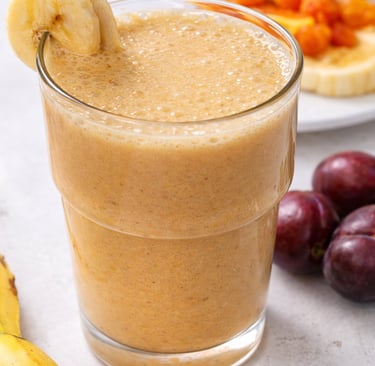 Shake natural rico em fibras que auxilia o funcionamento do intestino de forma simples e natural.